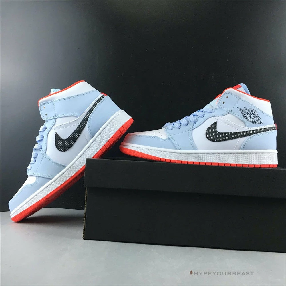Air Jordan 1 Mid Half Blue will present you with the premium light blue style with vibrant orange tones, elevating your streetwear attire. It will also give a captivating impact on your peers as you walk with its comfy, cushy, and smooth shoe construction. Get Air Jordan 1 Mid Half Blue kicks now to try its exciting vibe and shoe performance on your feet.