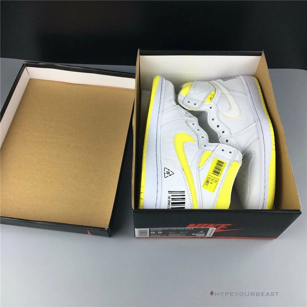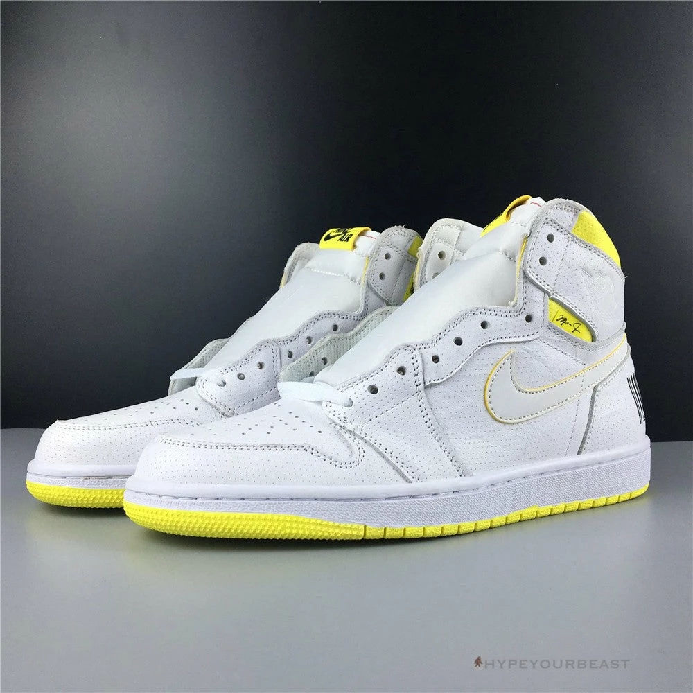Air Jordan 1 Retro High ‘First Class Flight’ has an outstanding appeal on its clean all-white hues while showcasing yellow accents. The pair is constructed from premium quality white leather. Its midsole and overlays are also in clean white color. To give an additional effect on its minimalist hue, vibrant yellow is on its ankle, Nike Air logo on tongue, and outsoles. Even its white Nike Swoosh possesses yellow outlining. Another interesting feature of Air Jordan 1 Retro High ‘First Class Flight’ is the black UPC barcode on its heel. Wearing these high ankle sneakers can brighten both the look and mood.