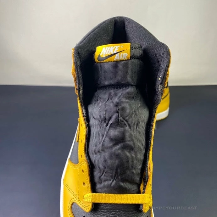 A high-top cut in black and yellow colorway is the main feature of Air Jordan 1 Retro High ‘Pollen’. These kicks have impressive black leather upper material with pollen yellow accents on their forefoot, side panels, eyelets, heels, and collars. Even its iconic Nike Swoosh on the lateral side and tongue brings out pollen hues. However, the dashing Air Jordan Wings are still in a black tone. Air Jordan 1 Retro High ‘Pollen’ is completed with white midsoles and pollen yellow rubber outsoles.