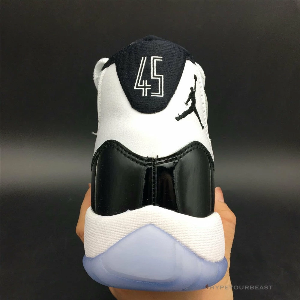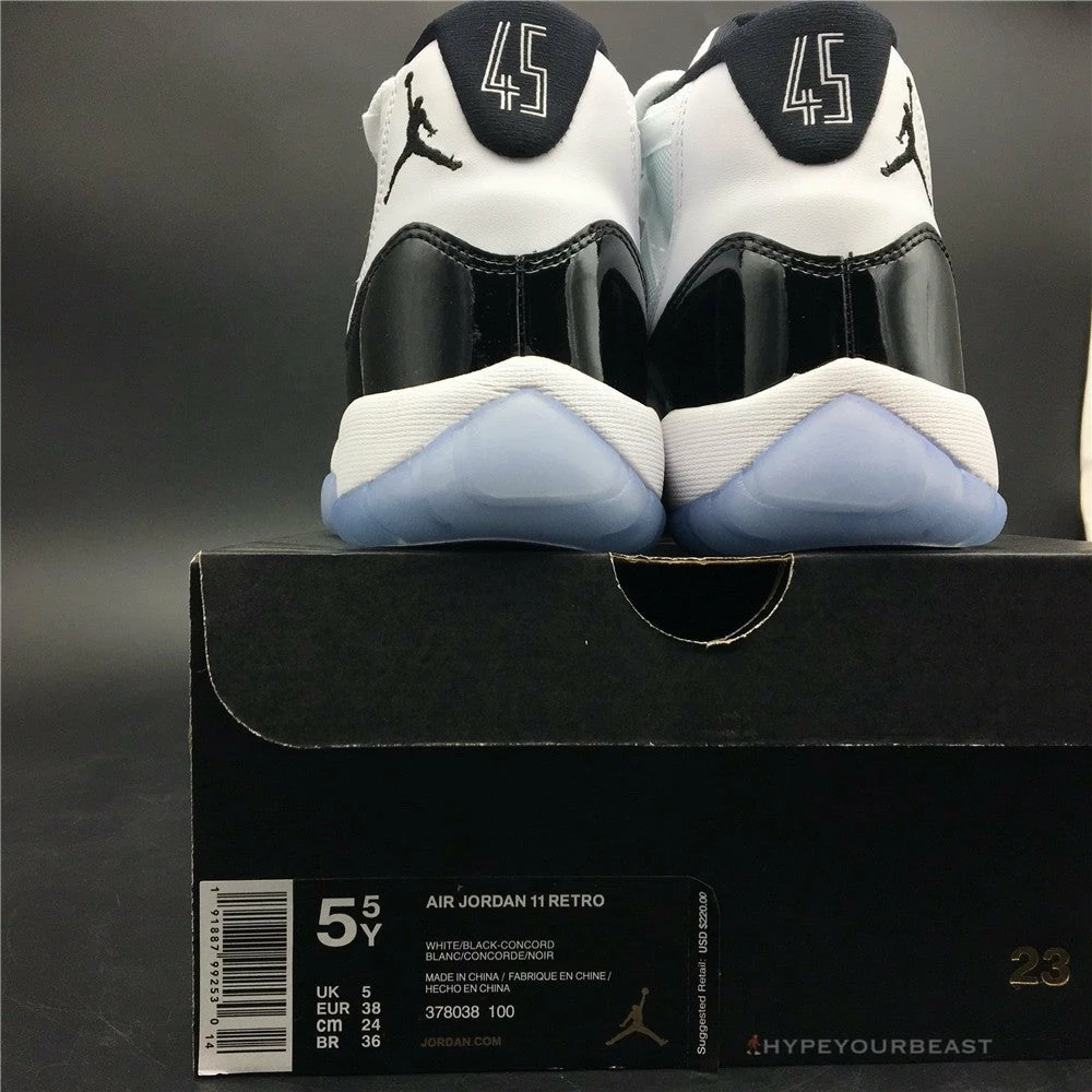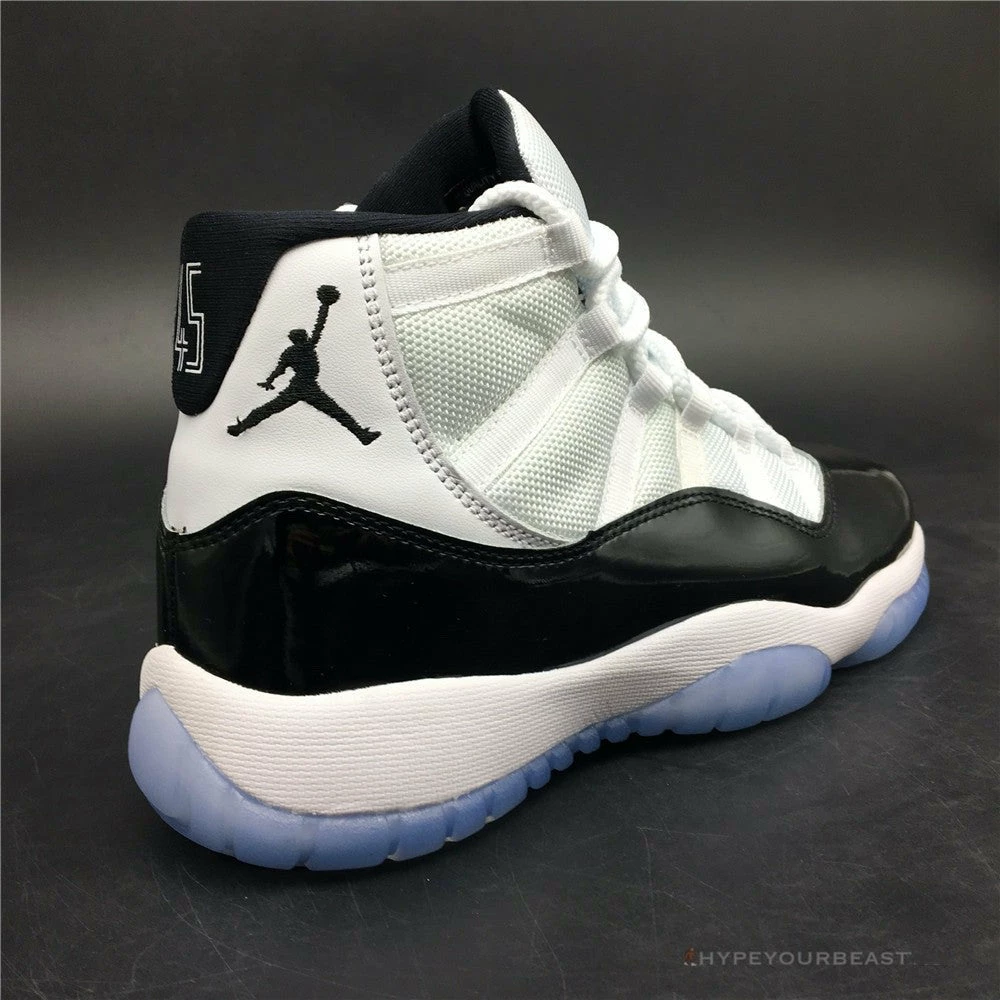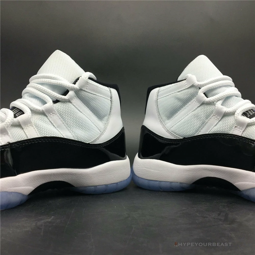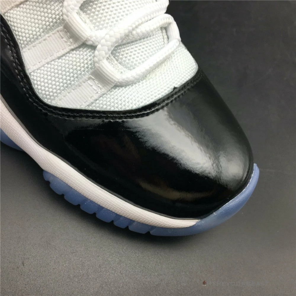 Air Jordan 11 ‘Concord’ flaunts white, black, blue, and translucent effects on your feet. These sneakers bring out a white mesh upper with black patent leather accents on the forefoot, mudguard, and heels. Air Jordan 11 ‘Concord’ Low also carries Air Jordan 11 remarkable lacing system along with the iconic Jumpman logo on its lateral side. Air Jordan 11 Retro ‘Concord’ is completed with white midsoles and icy blue translucent outsoles.