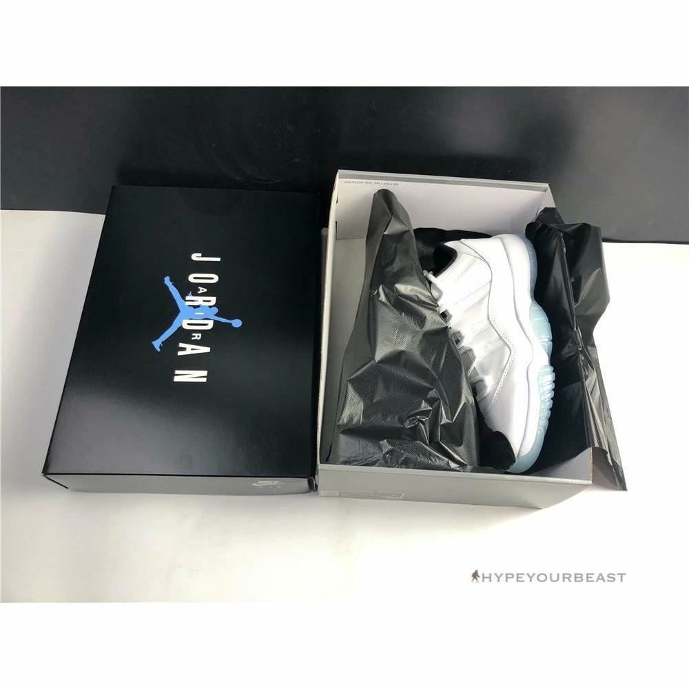 All white sneaker with translucent effect is the main feature of Air Jordan 11 ‘Legend Blue’ Low. These sneakers highlight white leather upper construction. It also uses tonal patent leather along its mudguard and tongue made from a ballistic mesh finish. Air Jordan 11 Low Retro ‘Legend Blue’ promotes an all-white upper but it also flaunts the translucent Legend Blue outsoles making it more extraordinary. The iconic Jumpman logos also appear on the tongue tab and outsoles.