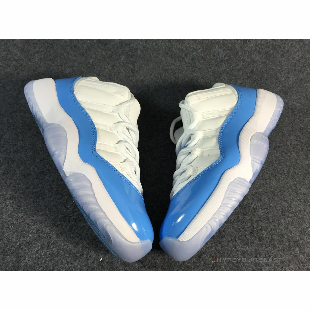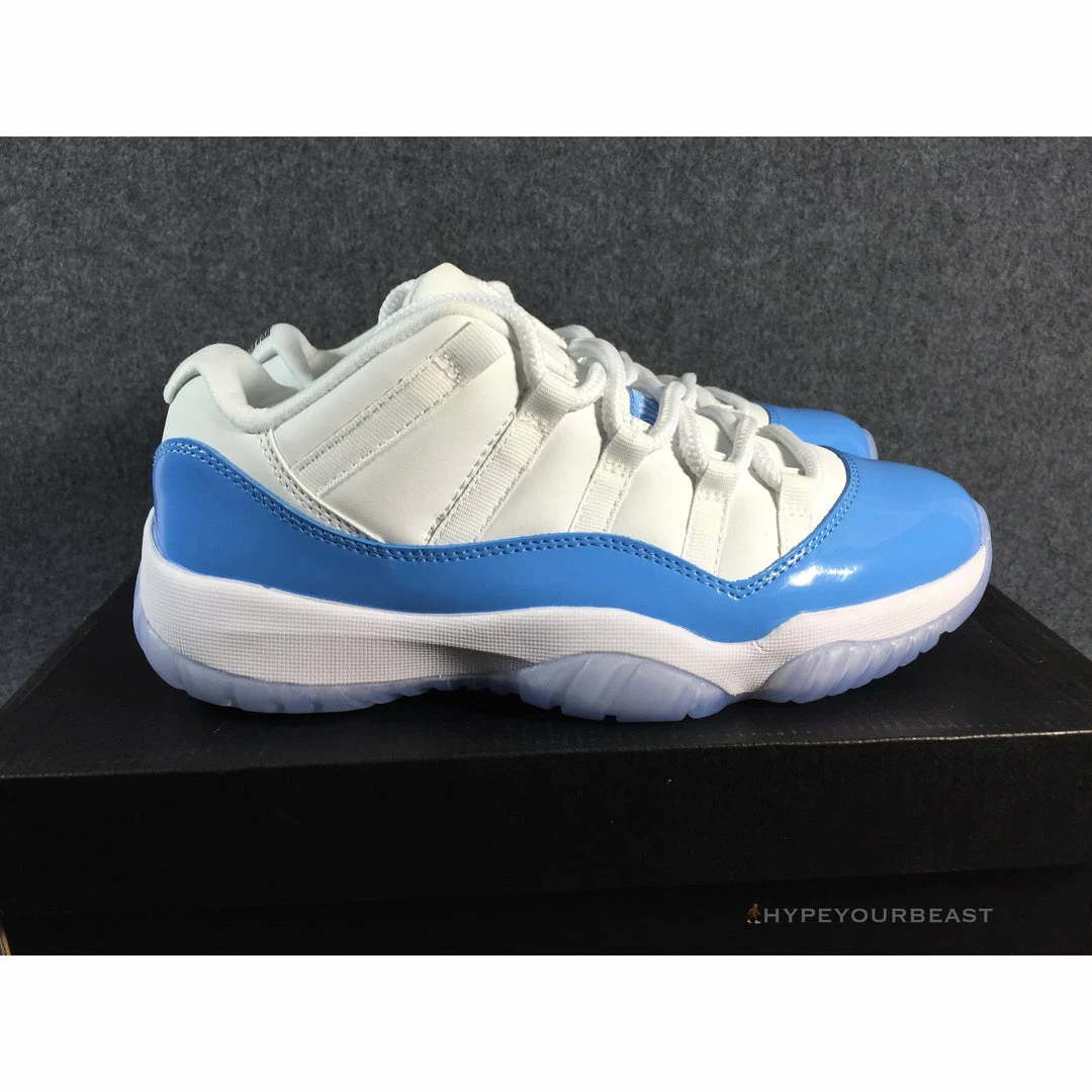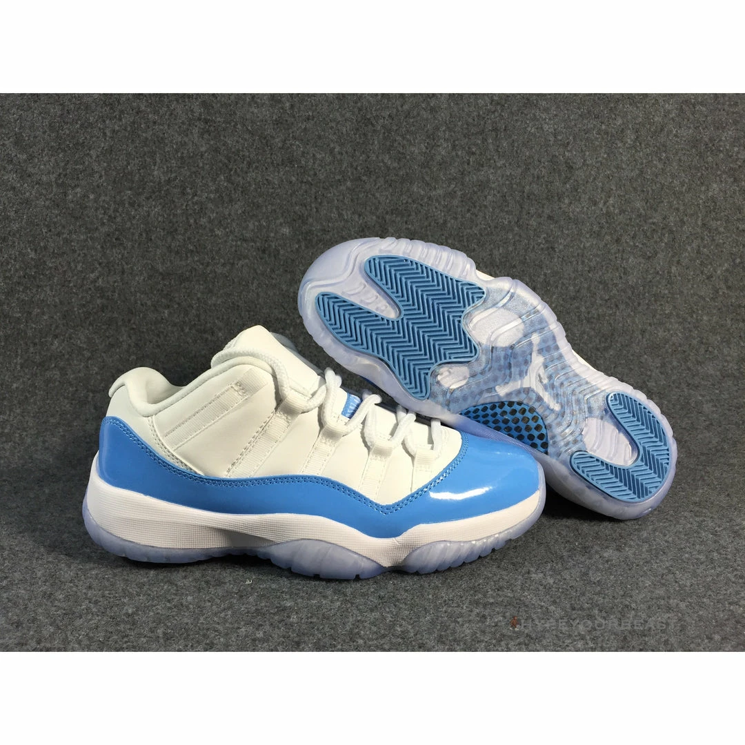 Air Jordan 11 Retro Low ‘University Blue’ is not your ordinary two-tone blue and white sneakers. This footwear includes white mesh upper material with University Blue leather overlays. However, its main highlight is the ice blue translucent outsole, making it more dashing on your feet. Men’s Air Jordan Retro 11 Low White ‘University Blue’ also showcases the combination of Columbia and Cherry styles of the Air Jordan 11 collection. Wearing these sneakers boost your confidence due to their iconic colorway and incredible style to complete your all-day look.
