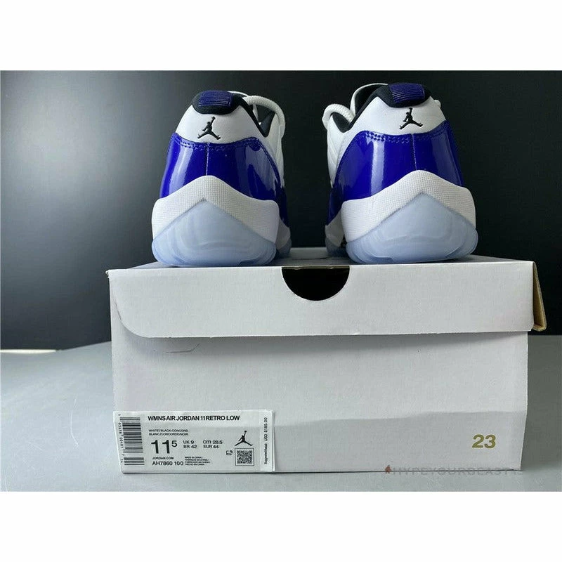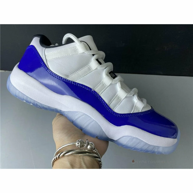 Air Jordan 11 Low ‘White / Concord’ brings out a fabulous tricolor scheme for your feet. It has a white, black, and concord colorway that many sneakerheads love. These sneakers have a white leather upper with Concord leather detailing. Concord 11 Blue Jordan is completed with white midsoles and clear gum outsoles.