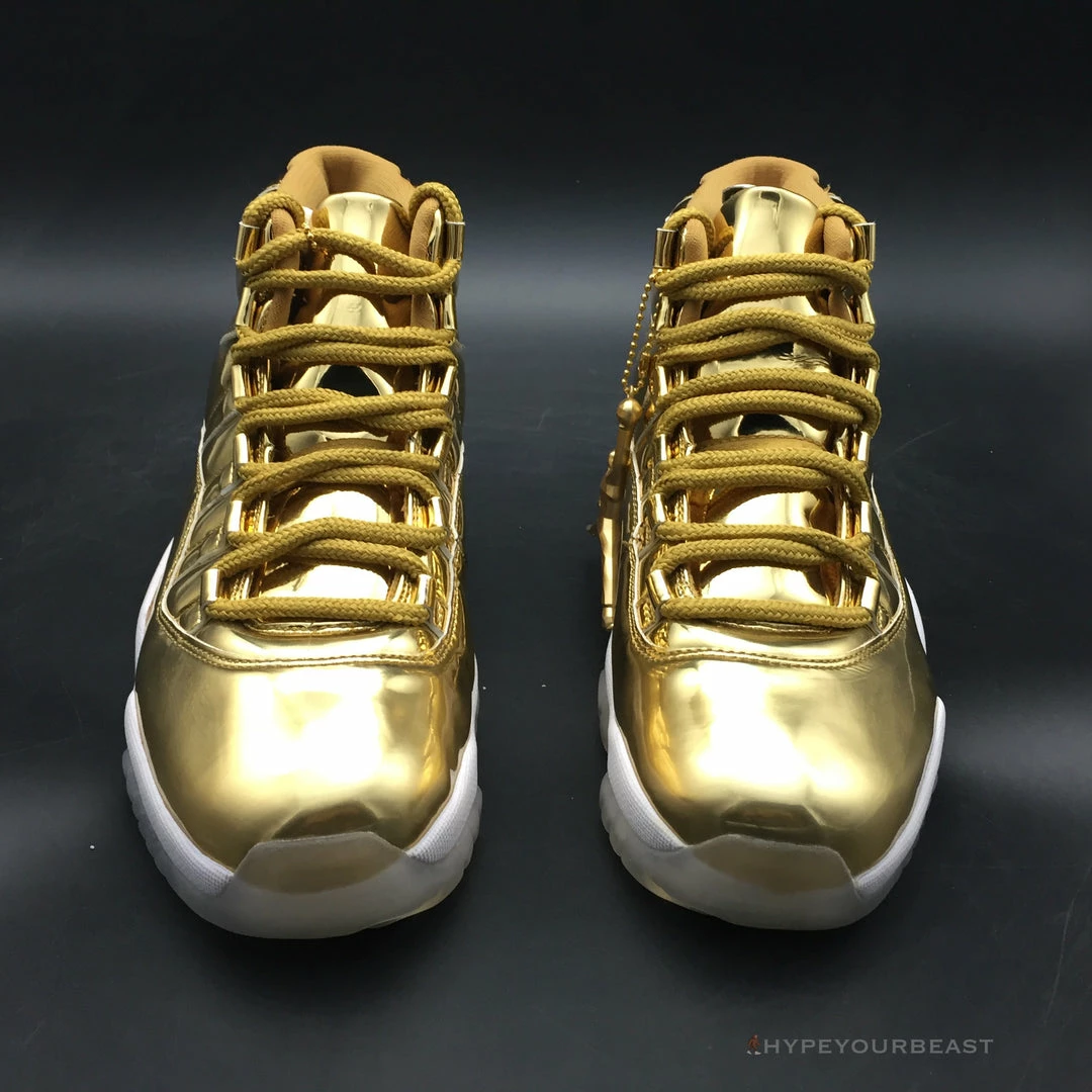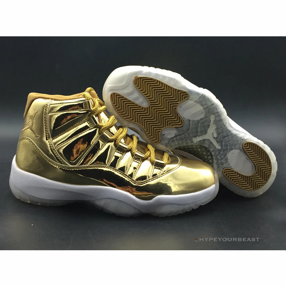 If you love metallic gold sneakers, then you will surely fell in love with Air Jordan 11 Metallic Gold! These sneakers celebrate the Rio Summer Olympics Closing Ceremony through its gold medal colorway. It also uses white mesh material with gold leather overlays making it more bright and shiny on your feet. The sneakers are completed with ice blue translucent outsoles, showcasing the white Jumpman logo under. This footwear is also named Air Jordan 11 Retro Low ‘Closing Ceremony’.