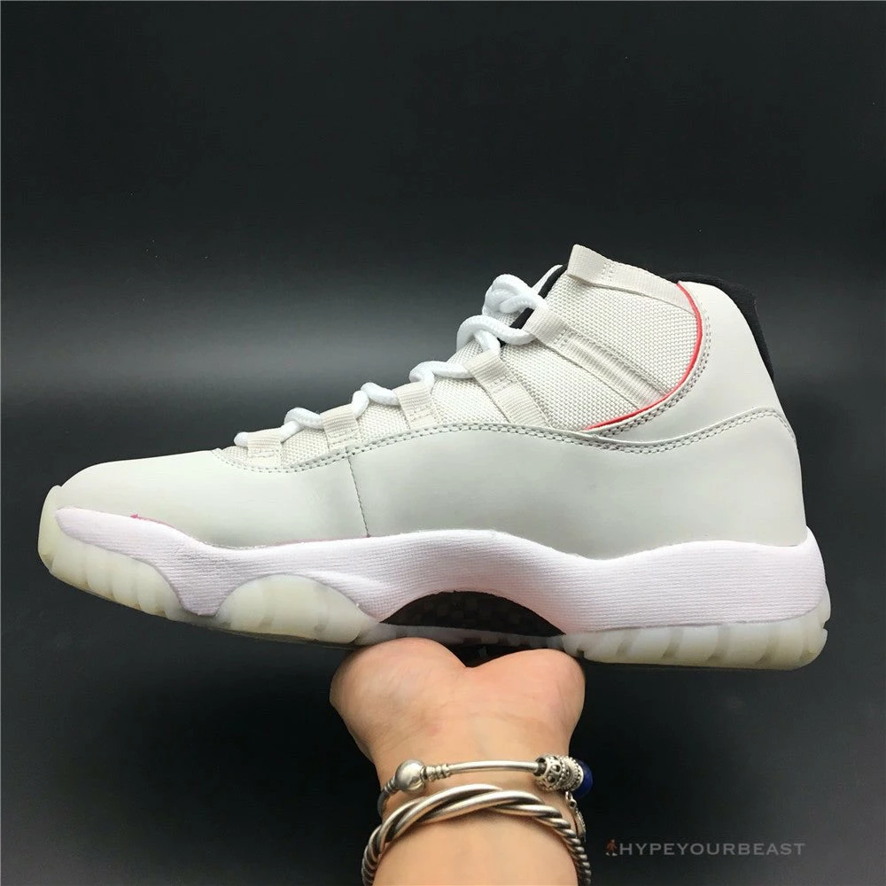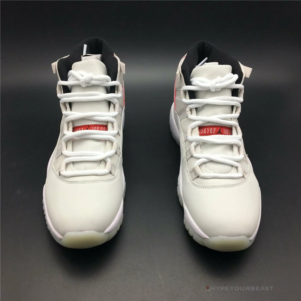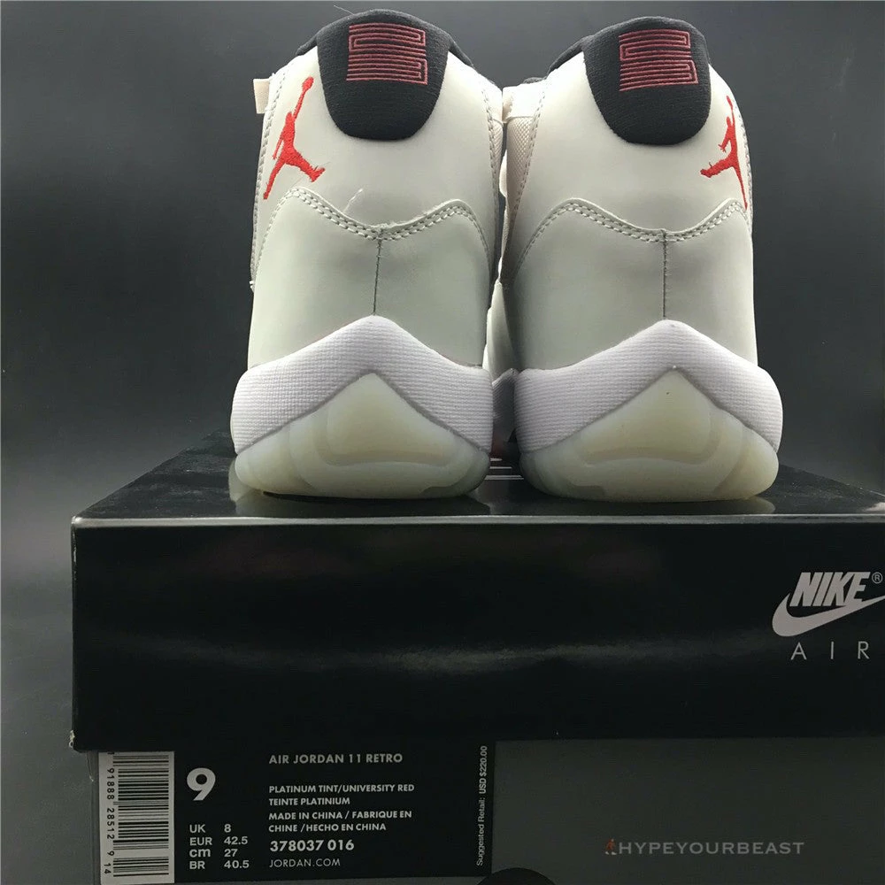 Air Jordan 11 Retro ‘Platinum Tint’ offers you classic silhouette touch on your feet. This footwear utilizes ballistic mesh and nubuck build in Platinum tint shade. The sneakers also use shiny patent leather overlays on their forefoot, mudguard, and heels. Besides that, Air Jordan 11 Retro ‘Platinum Tint’ reveals University Red tone on the tongue and Jumpman on the heels. The sneakers are completed with white midsoles with cream translucent outsoles.