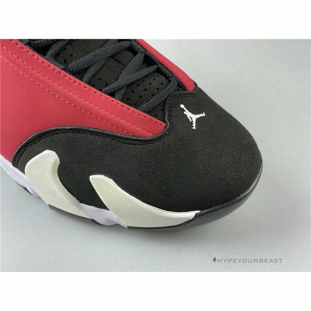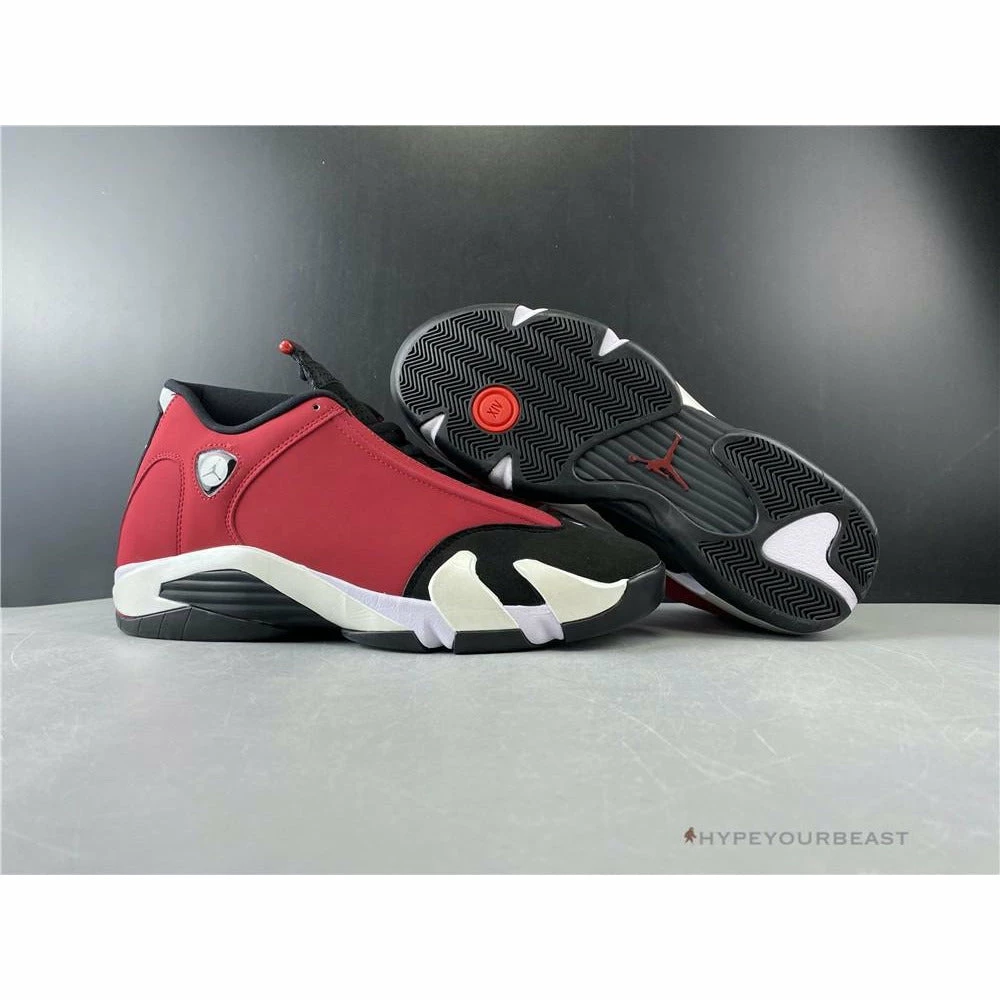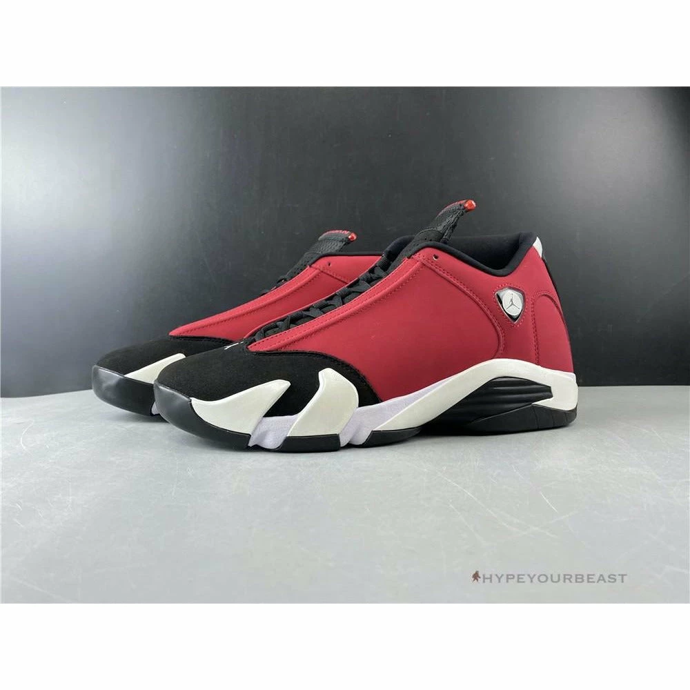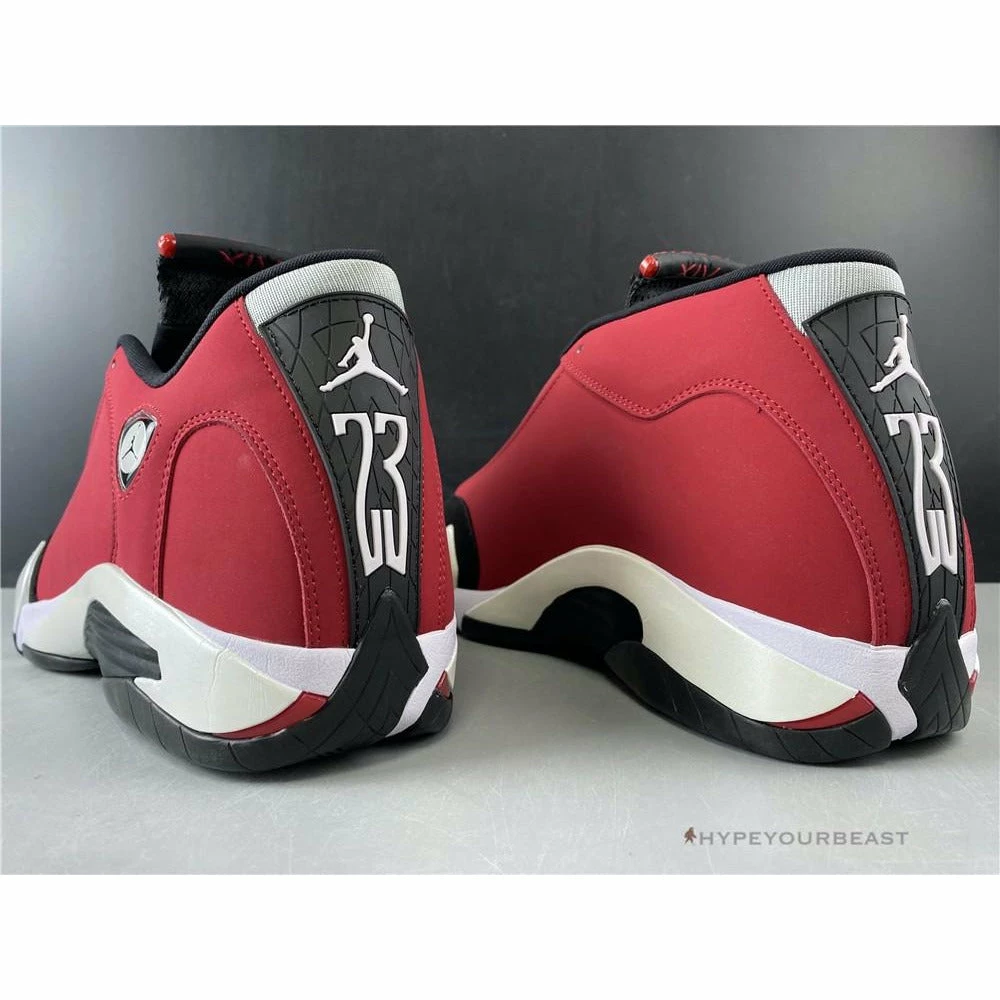 Air Jordan 14 Retro Gym Red showcases the final shoe colorway of Michael Jordan on a game with Chicago Bulls. It includes the color combinations of red, black, and white. Air Jordan 14 Gym Red consists of red suede material with black toe accents on the forefoot and eyestays. On the other hand, the white shades are emphasized on the midsoles, particularly on the side of the heel, forefoot, and shank plate. Completing the sneakers impressive design is the black rubber outsole which tends the shoes even bolder on your feet.