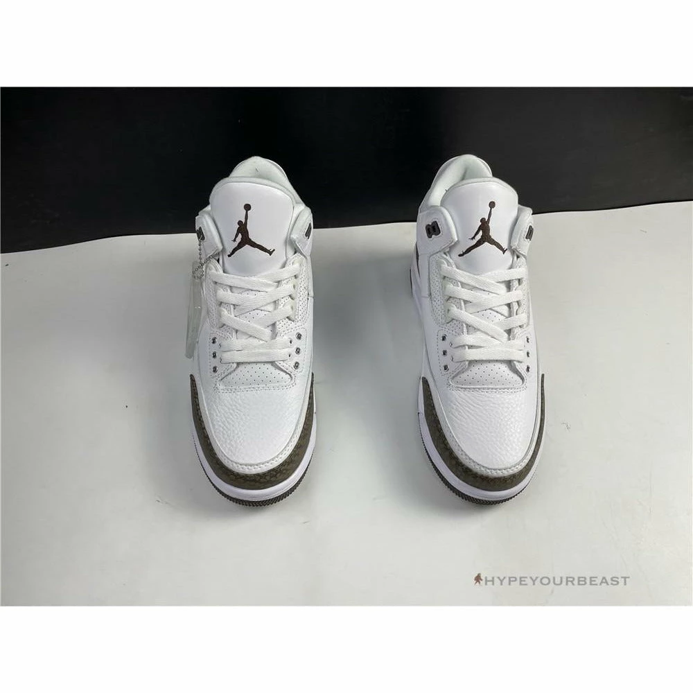Two-tone white and brown hue is featured through Air Jordan 3 ‘Mocha’. These sneakers present you white tumbled leather base construction with brown hue accents on the forefoot, heels, and outsoles. The Dark Mocha tongue also carries the elephant-print overlays making it more appealing in the eyes. Grab a pair of these clean white sneakers with mocha accenting and enjoy its visible Air sole technology performance on your feet.