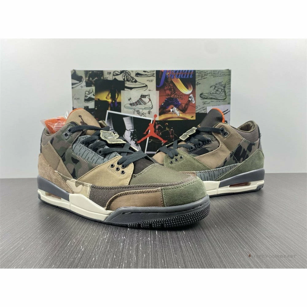 The Air Jordan 3 Retro ‘Patchwork’ is a unique twist on a classic sneaker. The ‘Patchwork’ edition features a patchwork design on the upper, made up of different shades of dark green, brown, and cream. The patchwork design is a nod to the original Air Jordan 3, which featured a similar patchwork pattern on the tongue. Additionally, it also features a nubuck upper and white midsole, with a black and orange outsoles.