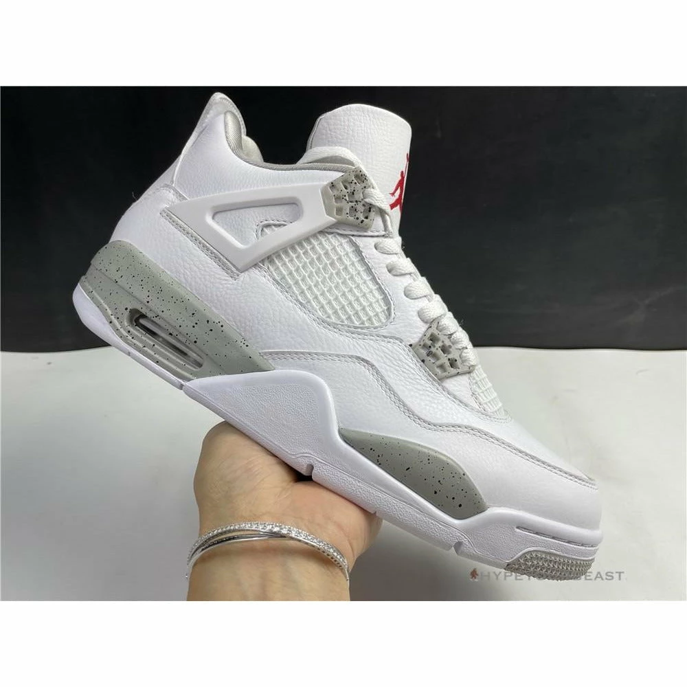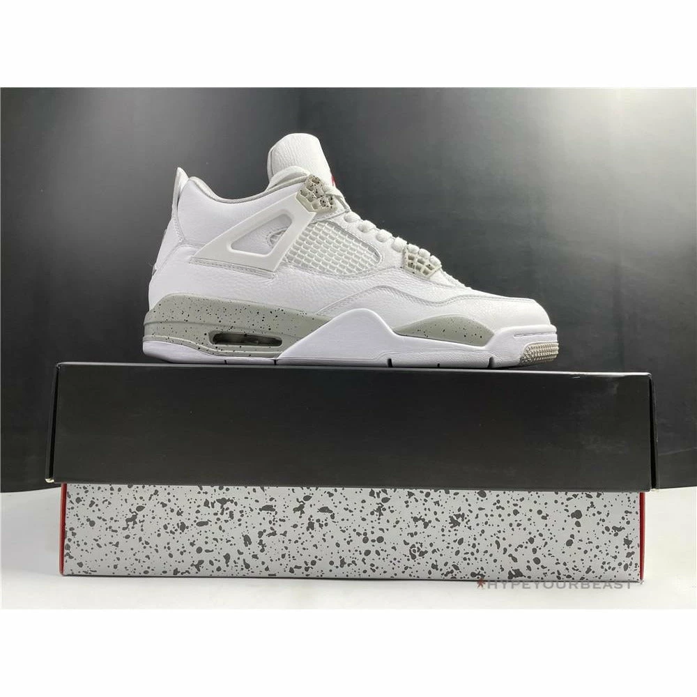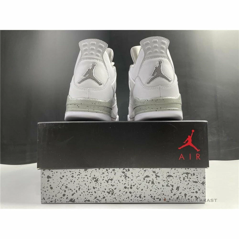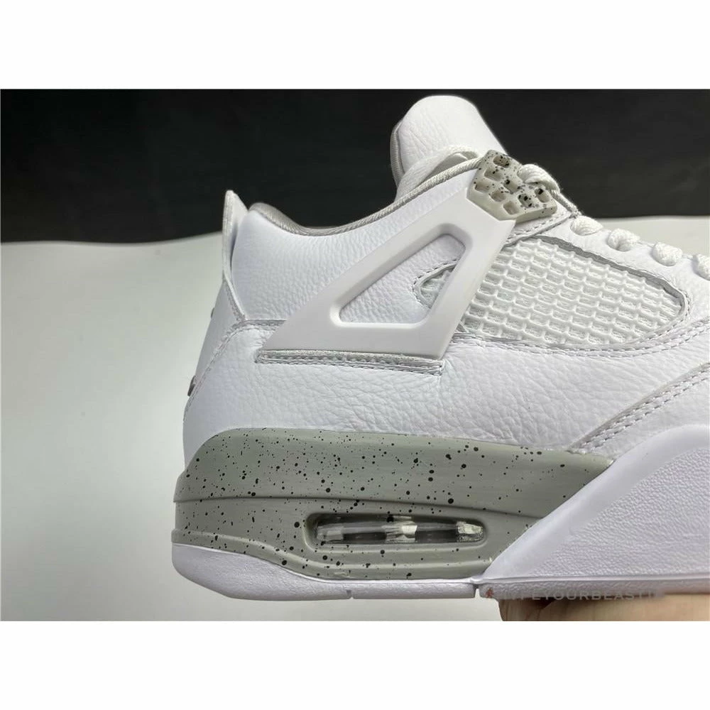Air Jordan 4 “White Oreo” flaunts a white colorway with tech grey accents. This footwear owns white leather upper base material. It also carries suede material in a white accent. Besides that, the TPU cage is also present in a white hue, making it look cleaner and minimalist. However, Air Jordan 4 “White Oreo” also includes tech grey touch on the eyelets, midsoles, and forefoot sole. Besides the style, the sneakers use visible air sole technology ensuring better quality and shoe performance.