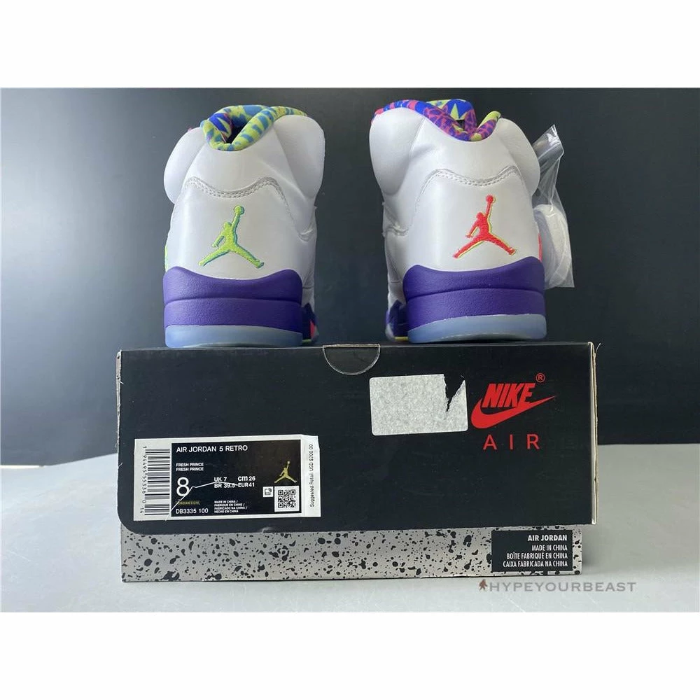 Nike joined Will Smith’s 50 birthday when they released the Air Jordan 5 Fresh Prince. These sneakers honor the actor on his famous role as the Fresh Prince. Thus, Nike prepared the exciting pair of Air Jordan 5 Retro NRG Fresh Prince which consists of white premium bases with New Emerald and Grape Ice colorways. Nike even surprises the actor through the insole design of the shoes for it has the show’s title sequence in graffiti-style.