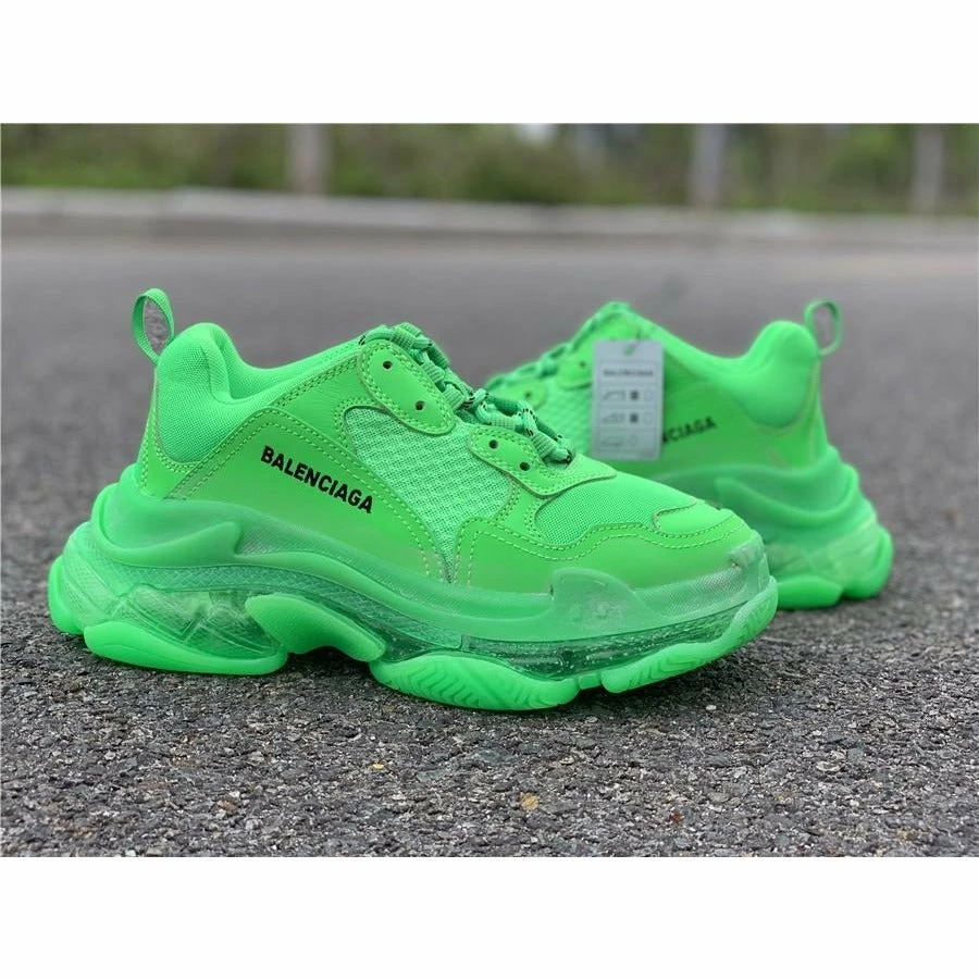 BCG Triple S Neon Green will provide you vibrant neon green style to complete your streetwear outfit. It will also keep a striking effect on peers as you flaunt its neon colorway. Pair this footwear with any dark color or monochrome clothes on your wardrobe. Grab these kicks to experience their thrilling vibe on your feet.