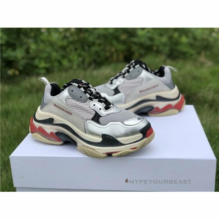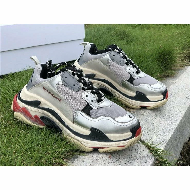 Bring on BCG Triple S Sneakers Silver Grey Red to your collection and watch out for how its multicolor style can heighten your streetwear outfit.