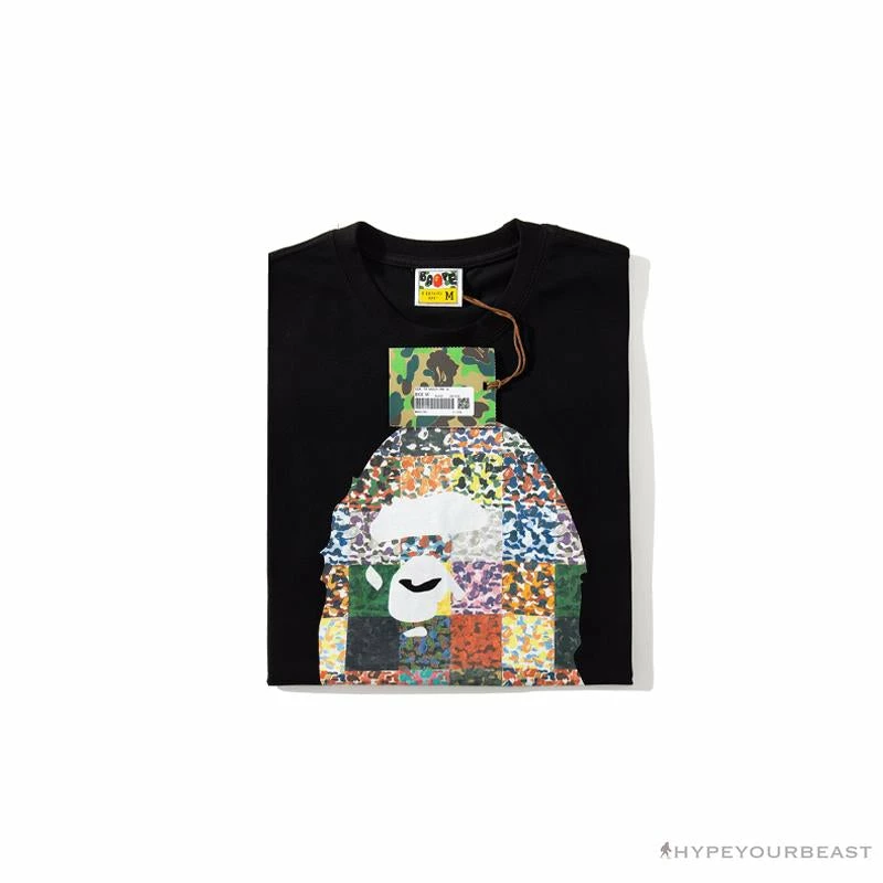 Hypeyourbeast BAPE Ape Man Head 28th Anniversary Camouflage Color Block Tee ‘BLACK’