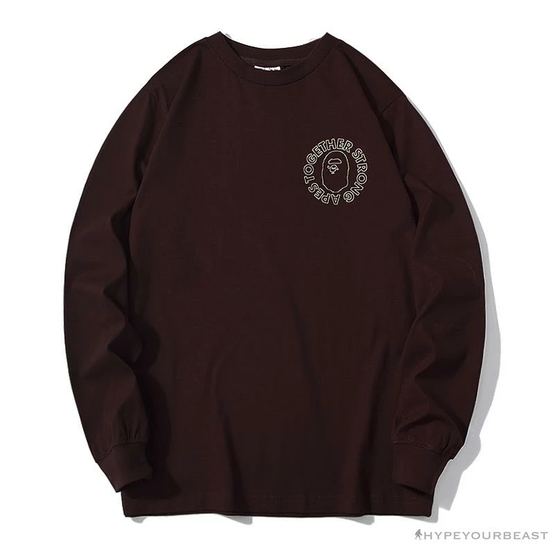 Hypeyourbeast BAPE APES TOGETHER English Alphabet Ape Head Long Sleeve Shirt ‘WINE RED’ Clothes