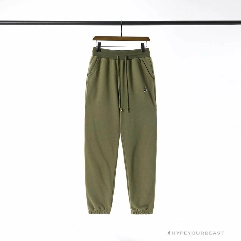 Hypeyourbeast BAPE Classic Ape Head Embroidered Standard Cotton Terry Pants ‘ARMY GREEN’