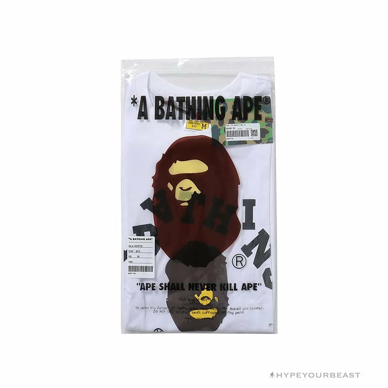 Hypeyourbeast BAPE Messy Letters Upside Down Little Ape Head Tee Shirt ‘WHITE’