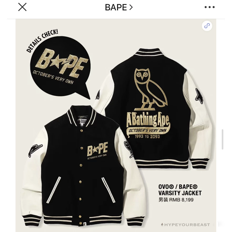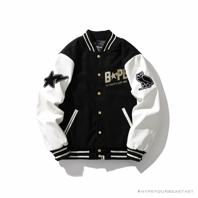 Hypeyourbeast BAPE OVO Patchwork Baseball Owl Jacket Clothes
