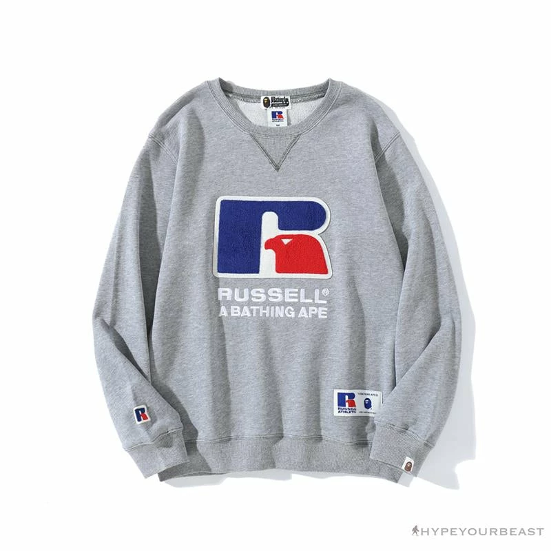 Hypeyourbeast BAPE X RUSSELL ATHLETIC Joint Pullover Long Sleeve Shirt ‘GREY’