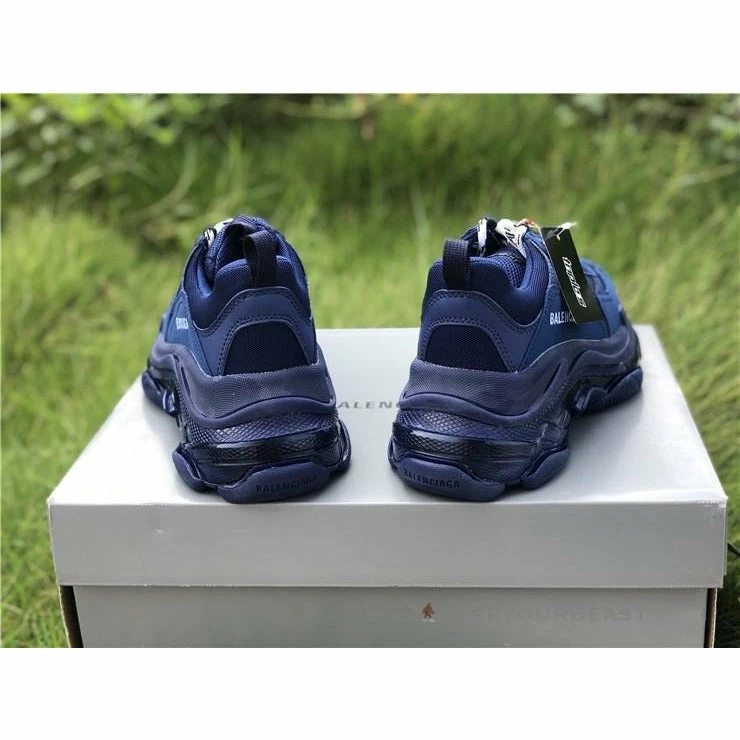 Upgrade your sneakers with BCG Triple S Clear Sole Navy Blue and savor its overall navy blue colorway along with its premium construction!