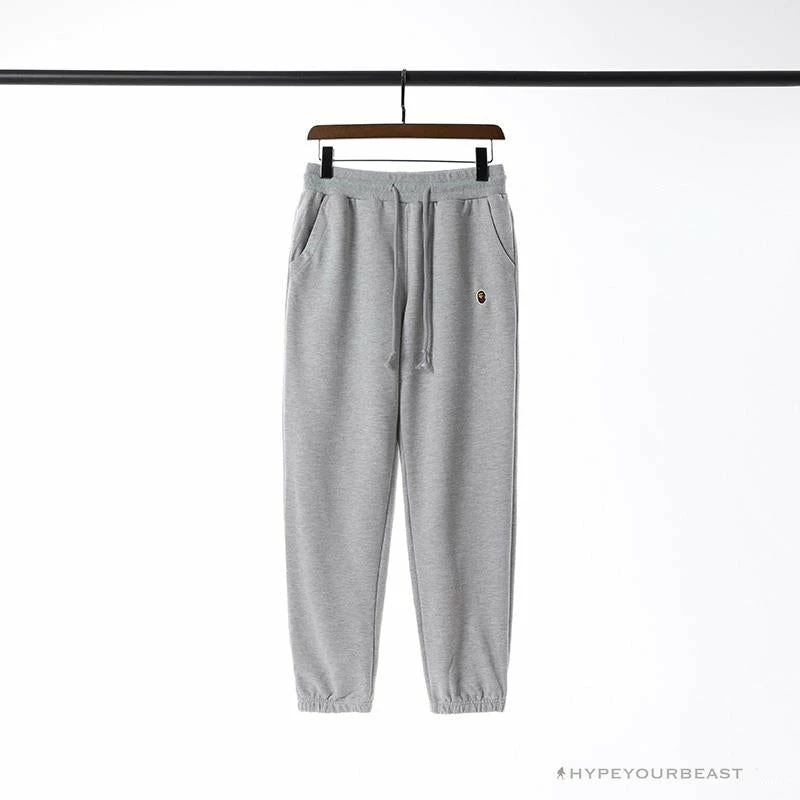 Hypeyourbeast Clothes BAPE Classic Ape Head Embroidered Standard Cotton Terry Pants ‘LIGHT GREY’