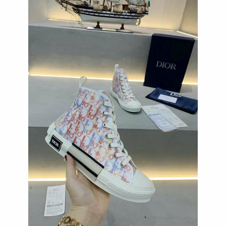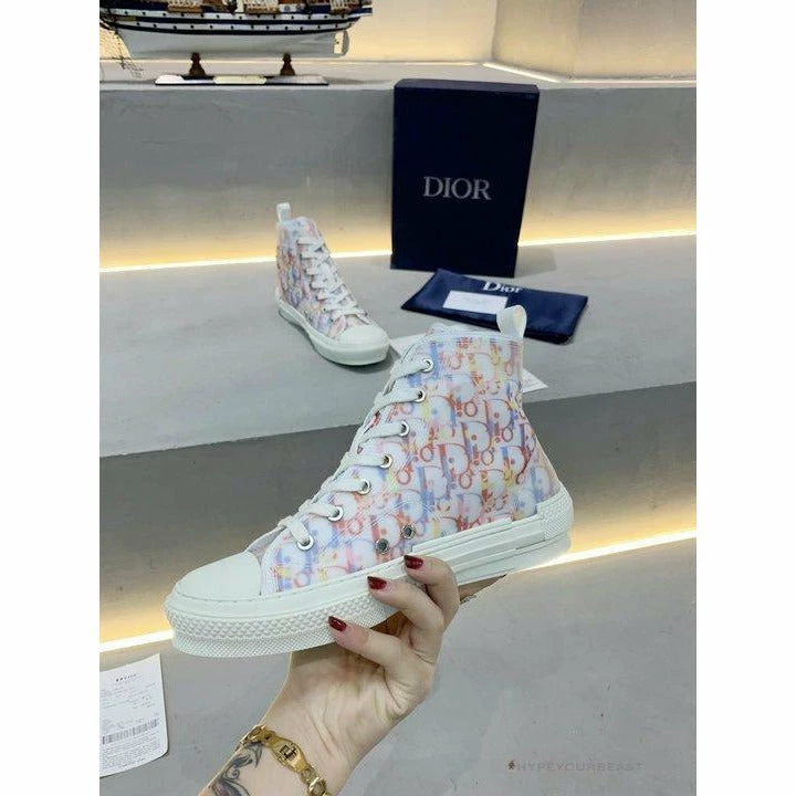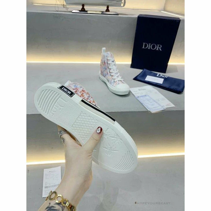 Besides the minimalist colorways of Dior B23, the brand still offers multicolor sneakers to give a fun and entertaining experience through its B23 high-top Dior Oblique Multi. It has iconic multiple hues with the Dior oblique canvas. Its white translucent effect still provides an aesthetic effect on the pair as it carries other white detailing on the laces, pull-on tabs, and toe caps. Even the outsoles of Dior B23 Multicolor are also constructed from white rubber while it carries the black and tan striped patches in the middle of the midsole. To complete the elegance, a Dior black and white logo are added on the midsole.