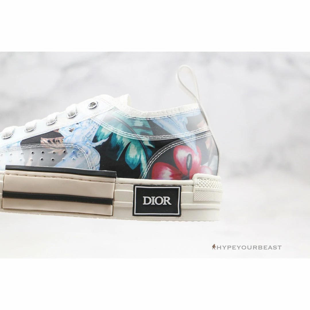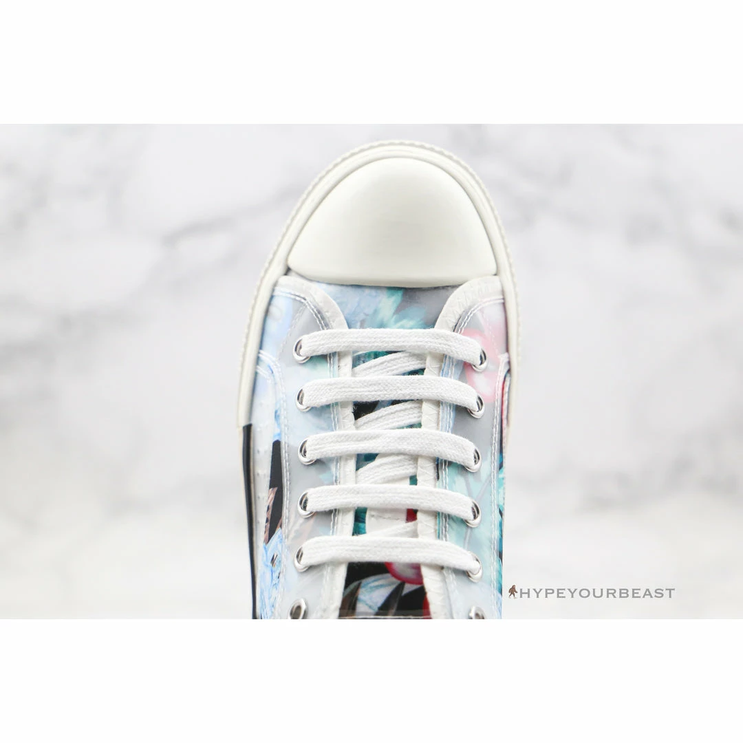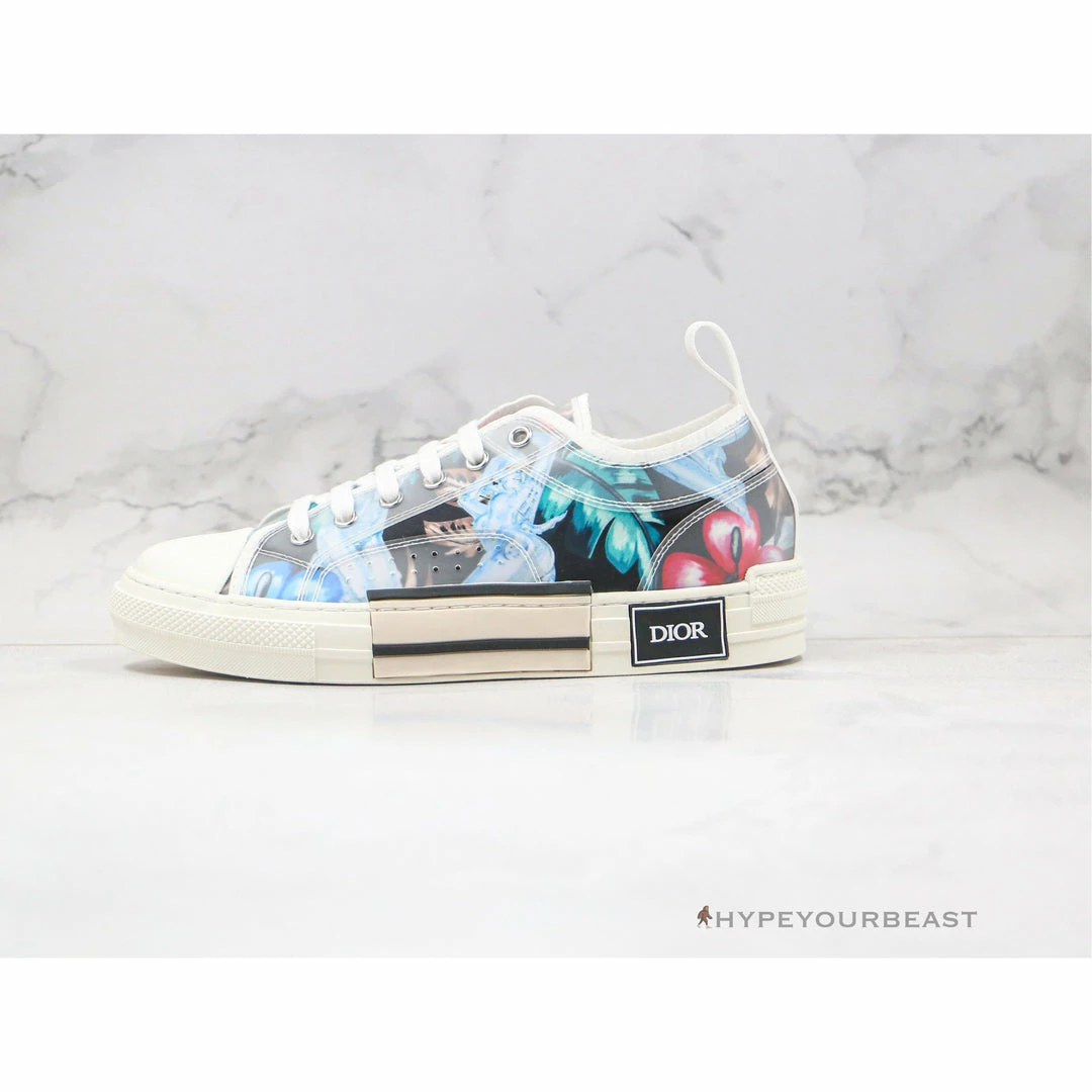 A multicolor pair of Dior B23 Low top multicolor sneakers embraces astonishing prints and style. This low-top footwear brings out summer feels with its colorful beach leaves prints with a black backdrop. These sneakers also carry the iconic white translucent overlays which top the prints creating a new design. Dior B23 Low top multicolor sneakers are completed with a Dior branding on the thick white midsoles with a classic Dior color patch of blue and cream on the side. Own a pair of these classic low-top sneakers and experience its exceptional style on your feet.Â