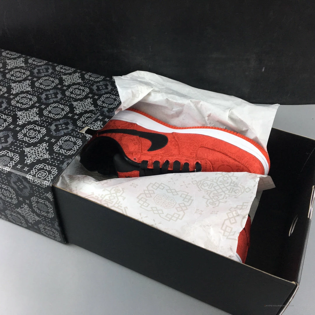 Perfect for the Chinese New Year celebration is a new collaboration Nike Air Force 1 World x CLOT sneakers. It manifests the iconic New Year theme and beliefs of happiness, luck, and prosperity. Thus, the lucky sneakers carry an all-red upper made from the red Clot Royale Deluxe silk textile with embroidered antique Chinese prints. It also features the black lacing system, ankle paddings, and a huge black Nike Swoosh at the lateral side. As for its soles, the Nike Air Force 1 World x CLOT sneakers bring out clean white midsoles with translucent windows at the heel and completing it with a red rubber gum outsole.Â