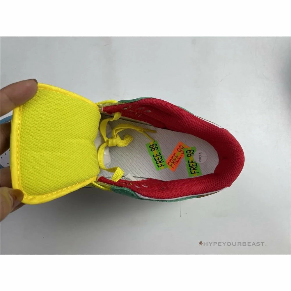 Multi-colored sneakers are the main feature of Nike Dunk Low Free 99. It carries white leather bases along with various colors of overlays. It includes Roma Green, powder blue, bright yellow, and red in different styles for each pair. However, these kicks showcase the Nike Swoosh in Light Chocolate hue. You can also see the sock liner with Free. 99 price stickers making it more appealing to the fans. Enjoy this impeccable footwear with its white midsoles and peach-tone rubber outsoles.