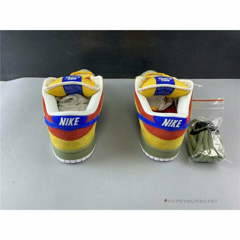 Nike SB Dunk Low Puff N Stuff consists of fabulously combined colors from the brilliant mind of Liam Sean Martin. These sneakers honor the H. R. Pufnstuff television program in the late 60s and early 70s. It features the characters to reflect on the shoes’ colors. It brings all the excellent suede constructed with green upper and midsoles. Nike SB Dunk Low Puff N Stuff also includes blue Nike Swoosh, red heels, yellow on ankles, and a lacing system.