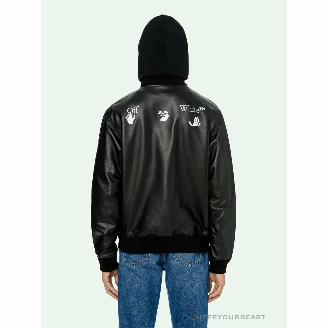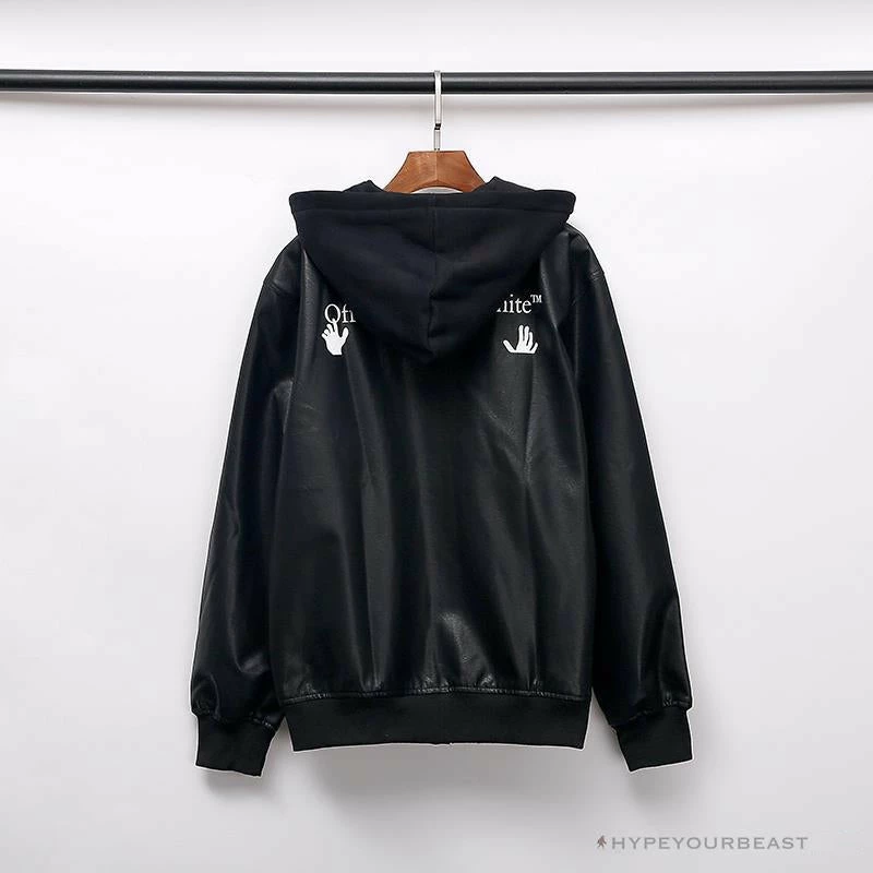 Hypeyourbeast OFF-WHITE 20FW New Logo Hooded Leather Jacket Black Hoodies & Jackets