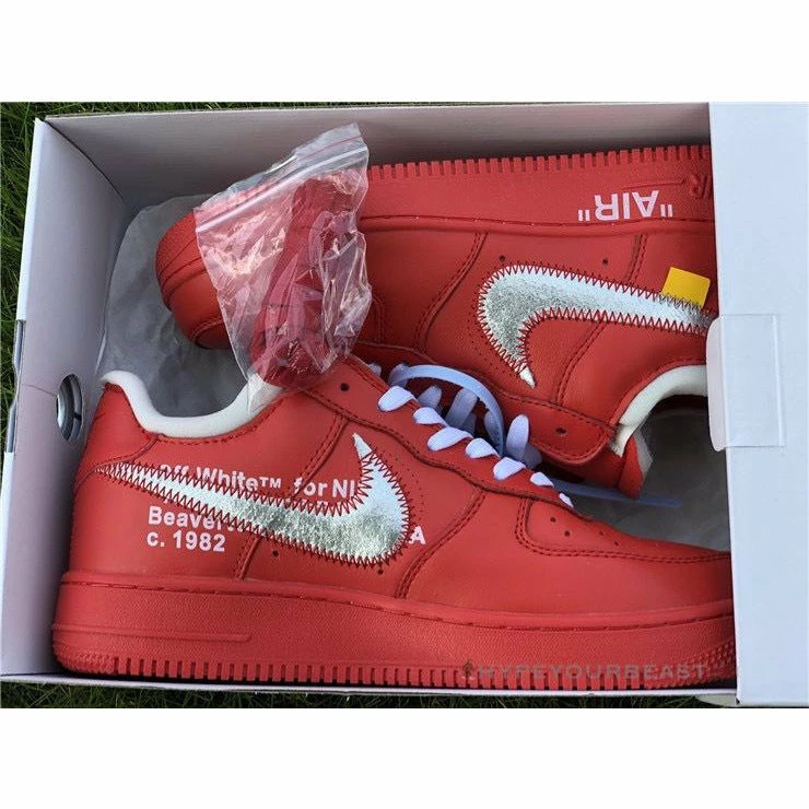Reward yourself with Off White x Nike Air Force 1 Low Red and try out its striking red and silver features, completing your impeccable street and gym outfits.