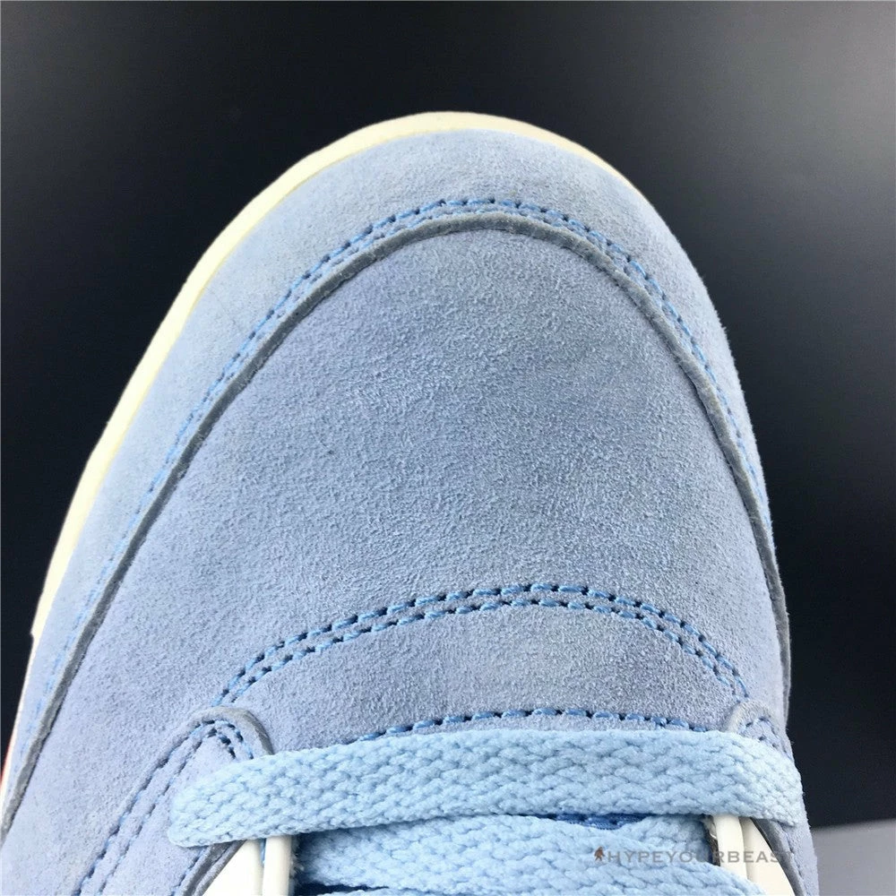 Michael Jordan Brand and his son Marcus introduced cool and fresh Air Jordan 5 Retro Ice Blue sneakers. This pair owns a unique colorway that honors the color of Jordan’s family house. It showcases Ice Blue suede upper with further red and Sail accents on the upper and midsole. Air Jordan 5 Trophy Room also reveals silver tongue, Jumpman logos, and visible Air sole technology. These sneakers even highlight red shark-tooth features with translucent outsoles. Grab a pair of these iconic sneakers and enjoy its excellent style and performance on your feet.